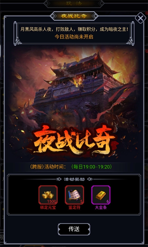 夜战比奇作为游戏日常活动之一,每日19:00-19:20限时开启;活动期间,通过击杀敌人和怪物获取积分,最终根据积分排名获取不同的奖励。活动开启时,从“玩法”——“夜战比奇”进入。