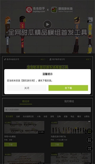 1、玩家需要先下载安装好甜瓜游乐场,如果没有下载甜瓜游乐场会提示下载游戏;
