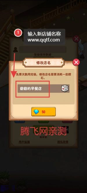 输入新的店铺名称,花费钻石,完成修改。