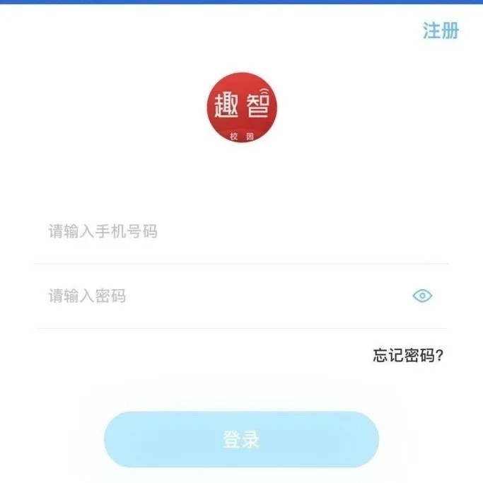 1、点击手机中安装的“趣智校园”APP,进入用户登录界面,如图1所示: