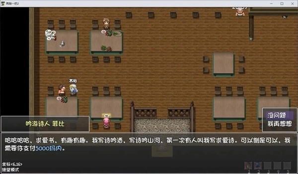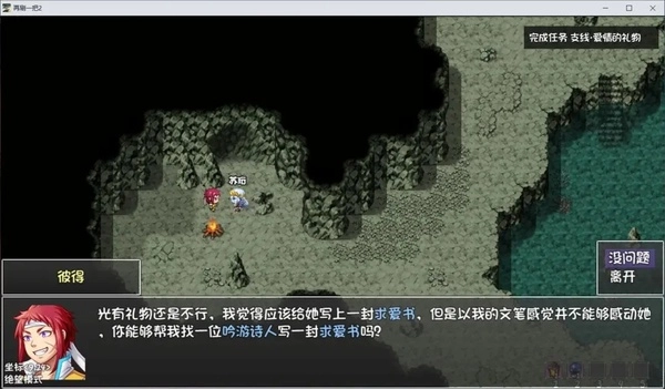 接着,我们拿出魔法水晶球(过完第四层主线即可获得),借助它传送到本层沙滩。抵达后,就可以去提交“遗失的戒指”这个任务。完成该任务后,我们重新回到落霜洞窟,把彼得所需的寒霜草交给他。交完寒霜草后,与彼得对话,进而开启重要支线“求爱信”。关键来了,我们要前往树心城的冒险者酒馆,在那里找到吟游诗人,花五千购买求爱信。(务必购买这个价值5000的信,其他的都不符合要求)
