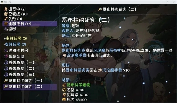 任务:哥布林的研究、药剂研究、悬赏任务-恶魔铁匠