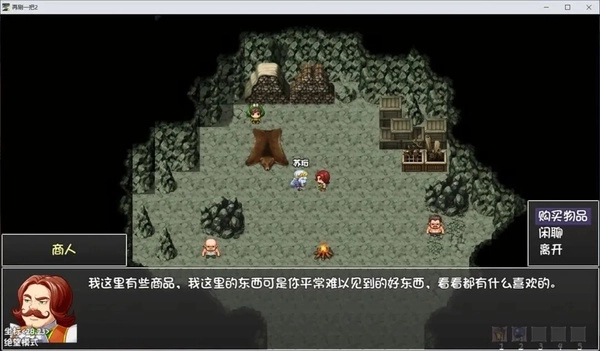 接下来我们向右走,来到右下角的山洞里,与里面的光头对话,接取任务遗失的项链,同时这里的商人卖铁汁和好果汁。