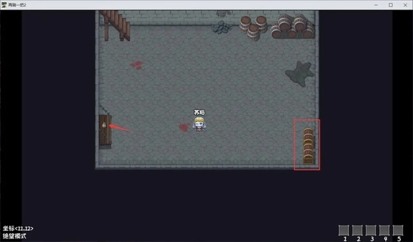 村民离开后,拾取地窖里的物品。使用左边的钱袋,可以获得10w玛内(我们的启动资金)