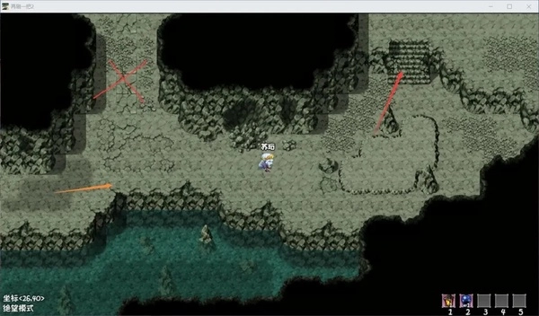 注意,为了方便看清我所在位置,我特意往上走了一格,要开启机关,应该紧贴石碑背面按互动