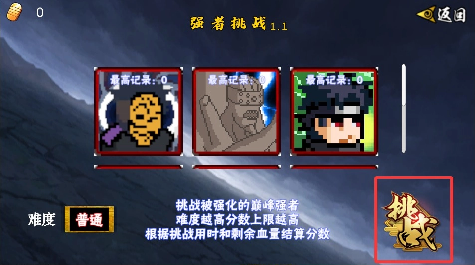 1. 打开游戏后,直接点击挑战模式,此时会弹出难度选项。对于新手而言,建议先选择简单难度来练练手,等熟悉操作之后,再尝试难度更高的关卡。