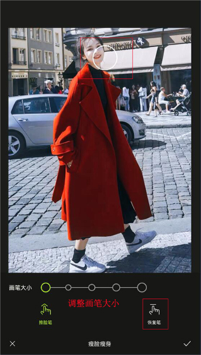 4、点击瘦脸瘦身功能,推动脸颊即可瘦脸,如下图所示