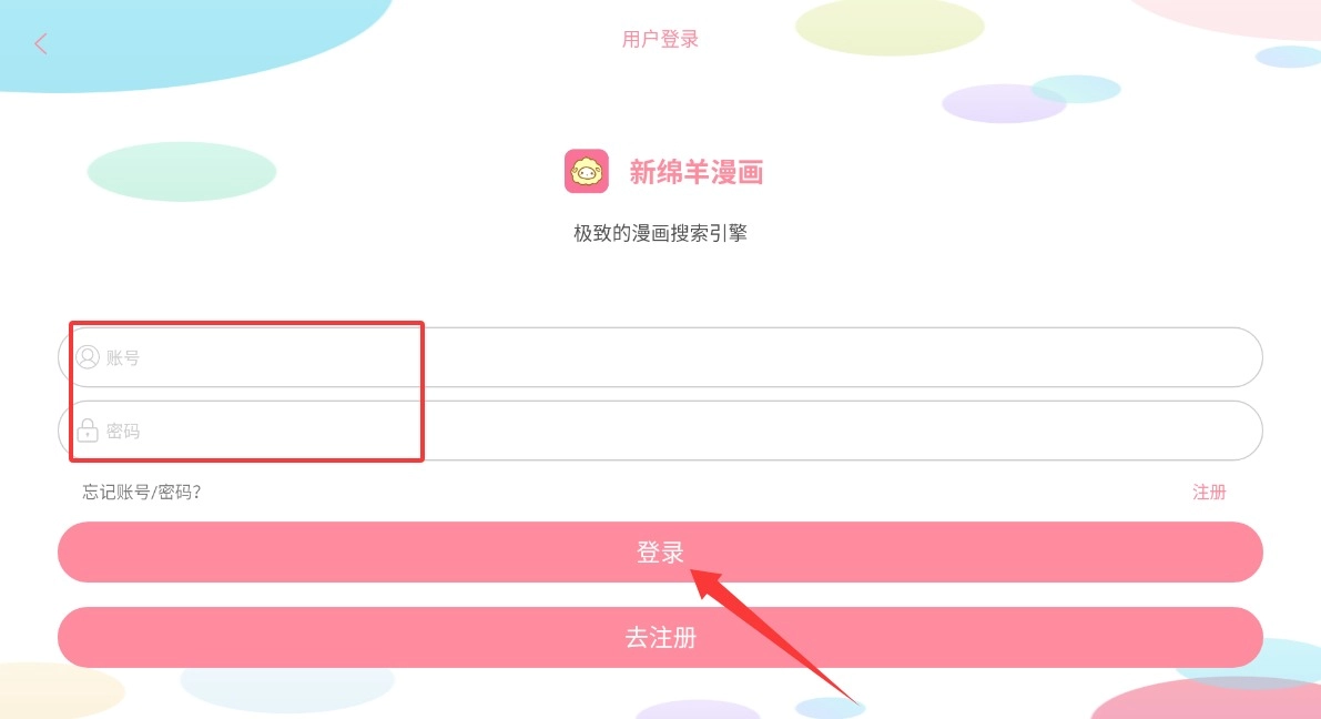 1. 初次打开新绵羊漫画时,需输入手机号码进行注册,按照要求设置好登录密码,便可完成账号创建。