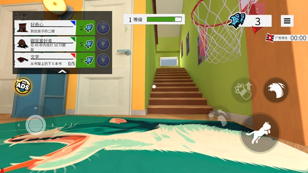 · 完成调皮任务:左上角会显示当前目标,例如“推倒5本书”,完成后可获得小鱼干奖励。