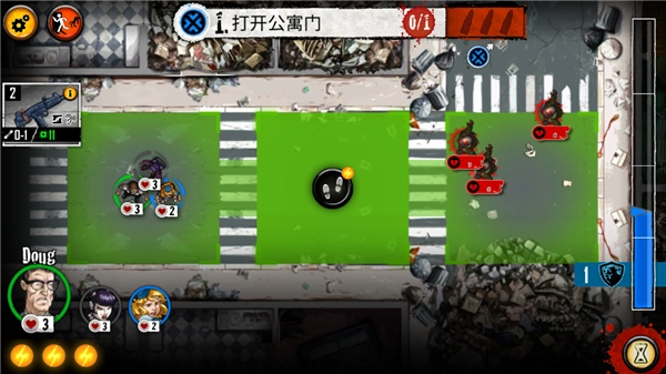 4、点击人物的武器后即可消耗对应的行动点攻击武器范围内的丧尸敌人。