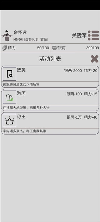 11、游历可以获得年龄上限+2与样貌+1的药,100w可以获得2次(不确定),年龄上限药可以获得2次。