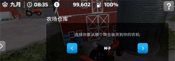 玩家需先前往自家宿舍后方的农舍,点击定位后,驾驶播种机抵达目的地。把车移至农舍的停车光标处,便可购买种子、除草剂及化肥。点击种子选择购买,种子会自动装载到播种机上。随后,找到一块已开垦好的农田,就能够进行播种。
