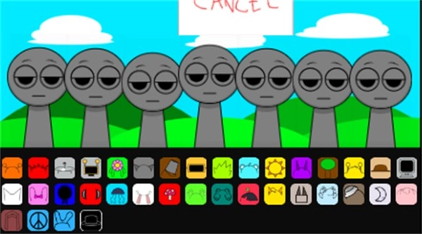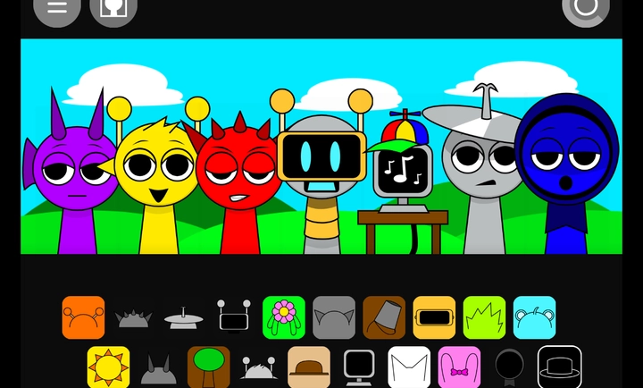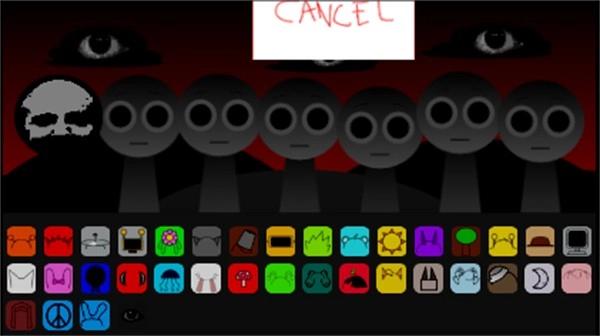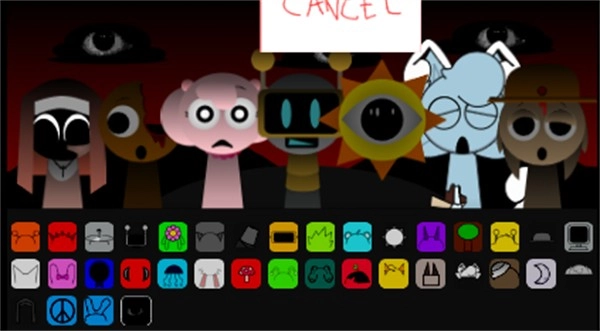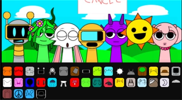1、开启节奏盒子sprunki模组后,我们能够把底部那数十个图标拖拽至角色身上。