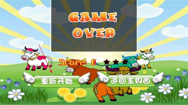 4、若未能成功套中一定数量的牛,游戏结束,点击重新开始再次挑战。