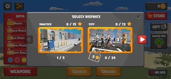 7、当成功消灭当前关卡内的全部敌人,玩家将会获取金币、星星以及经验等奖励,同时解锁下一关卡。这便是街头搏斗中文版的具体玩法!