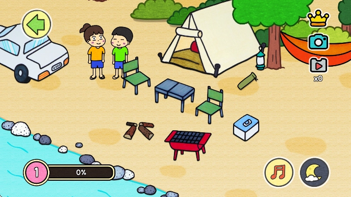 3、玩更多有趣的游戏:在露营地玩水、摆放美味食材、看美丽的夜景、拍照留取幸福时光。