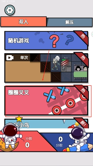 双人对抗赛属于轻松有趣的休闲解压对战游戏,它设有丰富多样的双人互动主题模式,像圈叉、欢乐鸟、切萝卜、牛顿钟等等,玩家能够自主挑选挑战项目。该游戏玩法简便,容易上手,着重策略与反应能力相融合,特别适合朋友们彼此切磋,一同享受欢乐的时光。