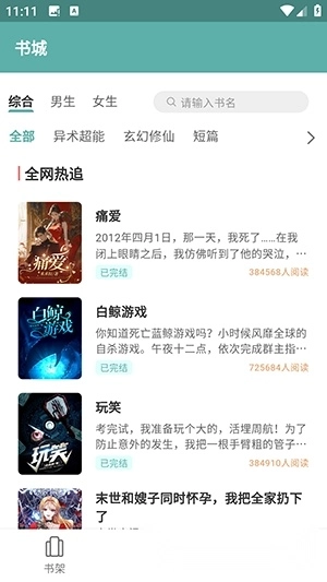 3、提供全网小说资源,包括言情小说、都市小说、玄幻小说等,全部免费阅读。