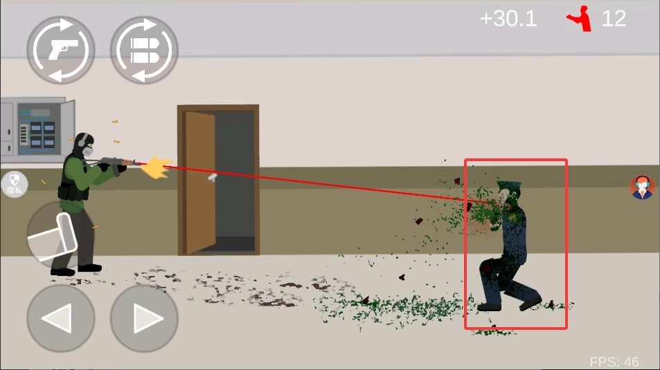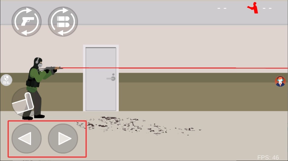 1. 通过点击并滑动左侧的虚拟摇杆来操控角色移动,以灵活的走位避开敌方发射的子弹。先找到掩体保障自身安全,随后再寻找合适时机进行反击。