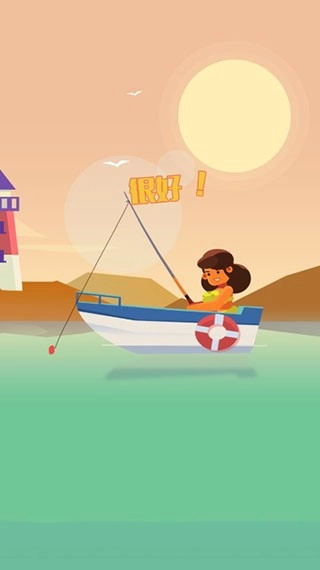 3、采用卡通的画面设计,温馨的钓鱼氛围,十分的悠闲。