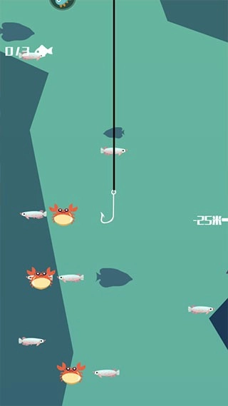 2、鱼钩会不断地下潜,玩家需要努力钓上更多的鱼儿。