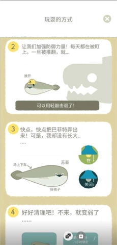 3、在鱼成长的过程中,总会有危机生物出现,这时就需要迅速轻敲屏幕将它们击退。