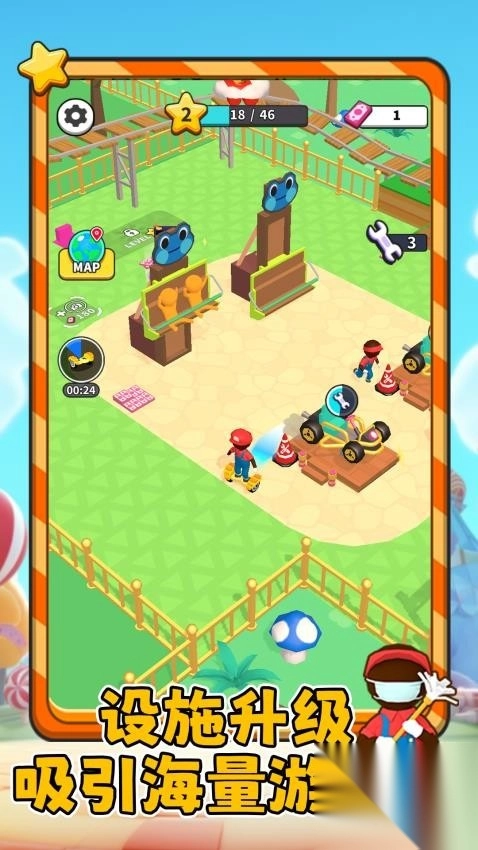 3、通过赚取金币,解锁全新区域与高级设施。深入研究科技,提升运营效率,让你的乐园在全球声名远扬。