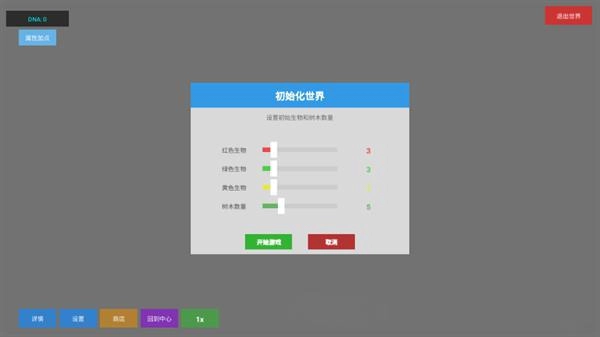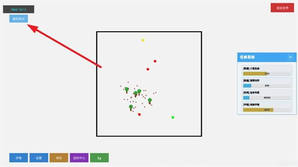 攻略:开个小型世界全放绿色,还有树木,就可以凑齐一堆进化点,属性啥的没搞明白,爱生啥生啥