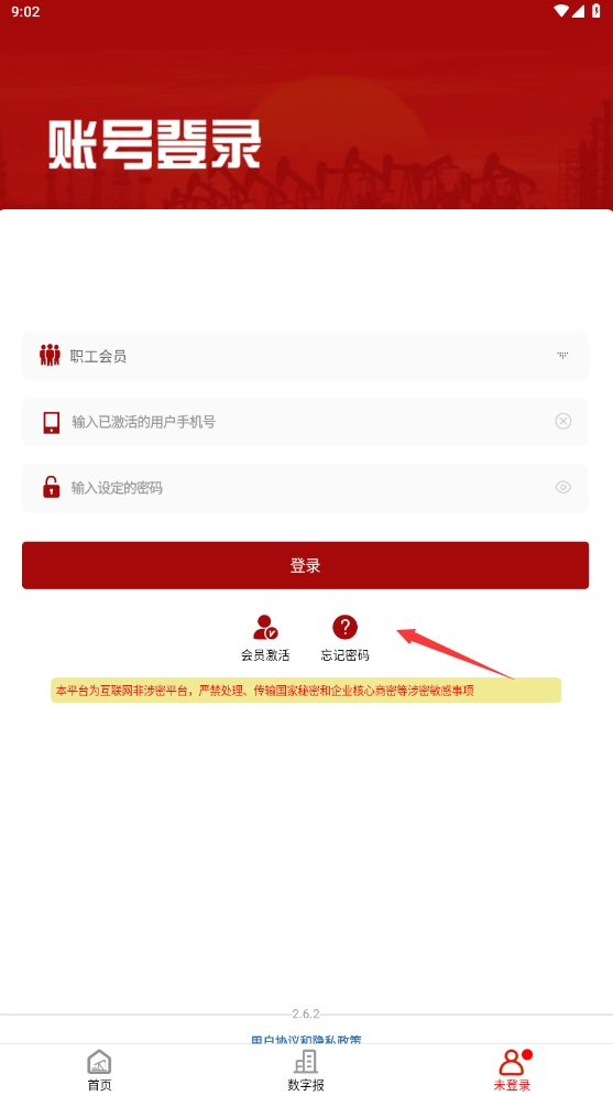 1. 开启胜利职工e家软件,然后点击“忘记密码”选项。