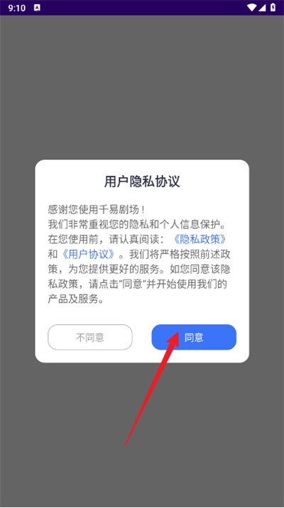 1、安装后打开软件,提示同意与否,点击同意进入注册界面;