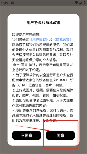 1. 打开软件并进入,点击同意隐私协议。