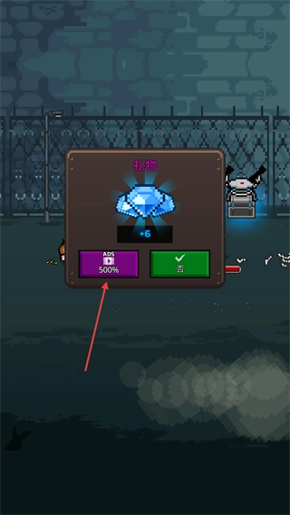 1、当出现礼物弹窗时,点击【ADS】-【500%】按钮能够获得更多钻石奖励,帮助增强后续的战斗能力。