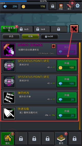 3、SP属性成长体系,借助资源强化攻击、防御、暴击等属性,装备与属性加成之间形成互补增效的效果。