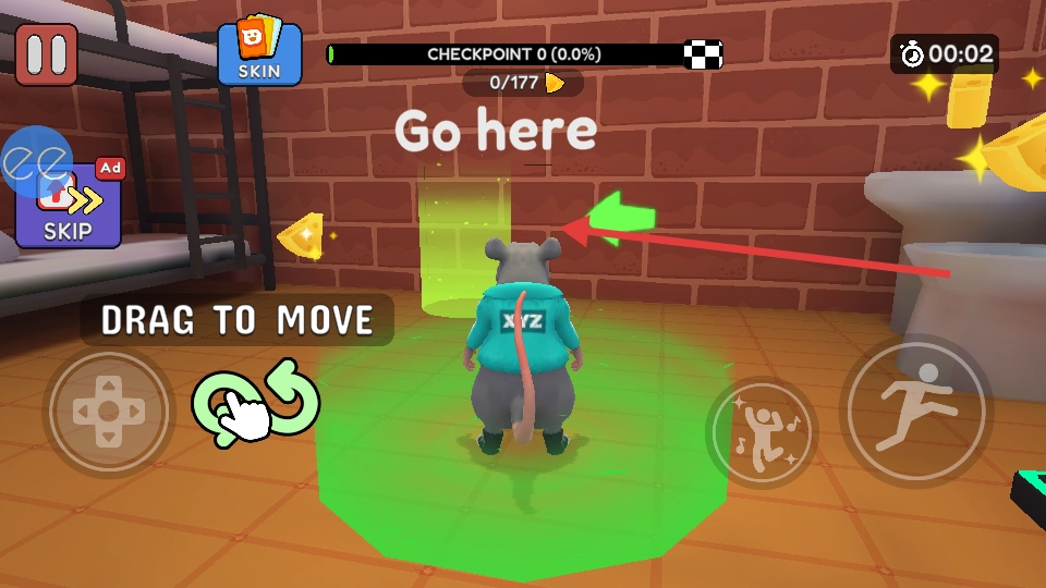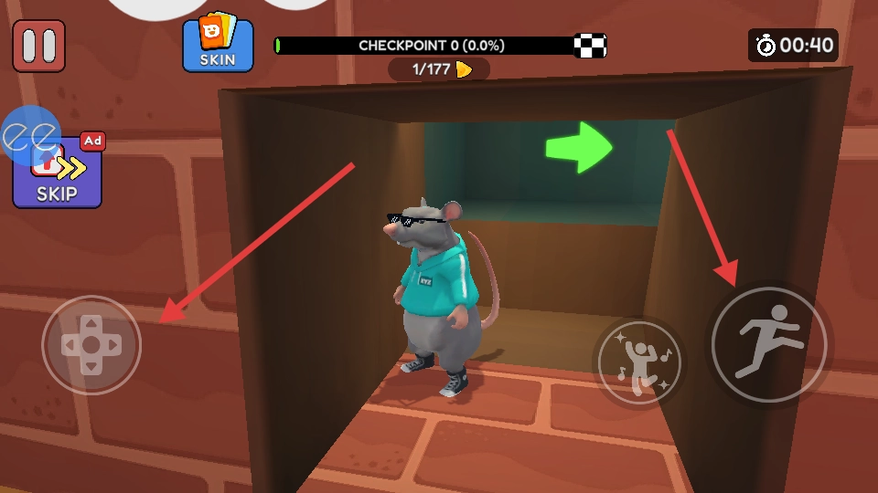1、通过虚拟摇杆来操控鼠鼠,让它展现出灵活巧妙的走位,可千万别让狱卒察觉到您那圆溜溜的屁股。