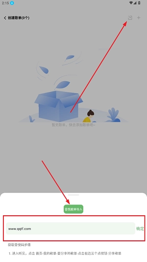 2、如图点击后,输入自己歌单的音悦码,之后选择音悦歌单导入;