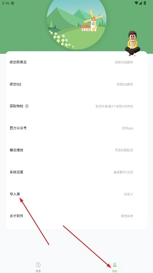 1、如图点击“我的”,在本页面中点击导入源;
