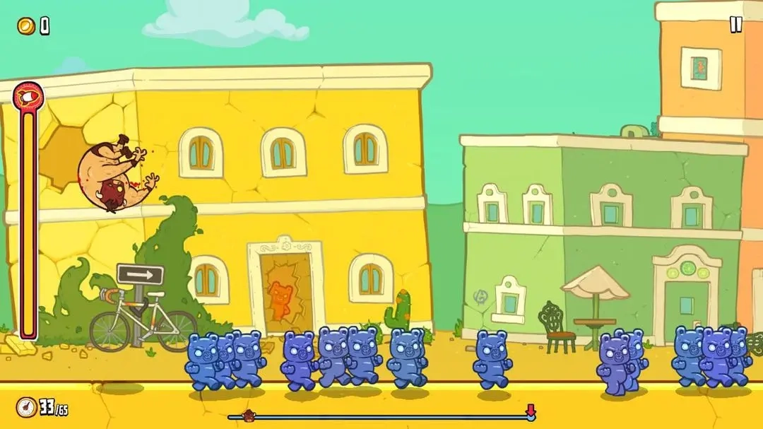 4、打击感满满的战斗机制:撞击软糖人、警察、BOSS,每一击都爽感十足。