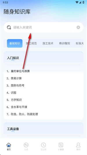 3.这款App配备了随身知识库,其中包含基础知识、施工规范等各类知识。