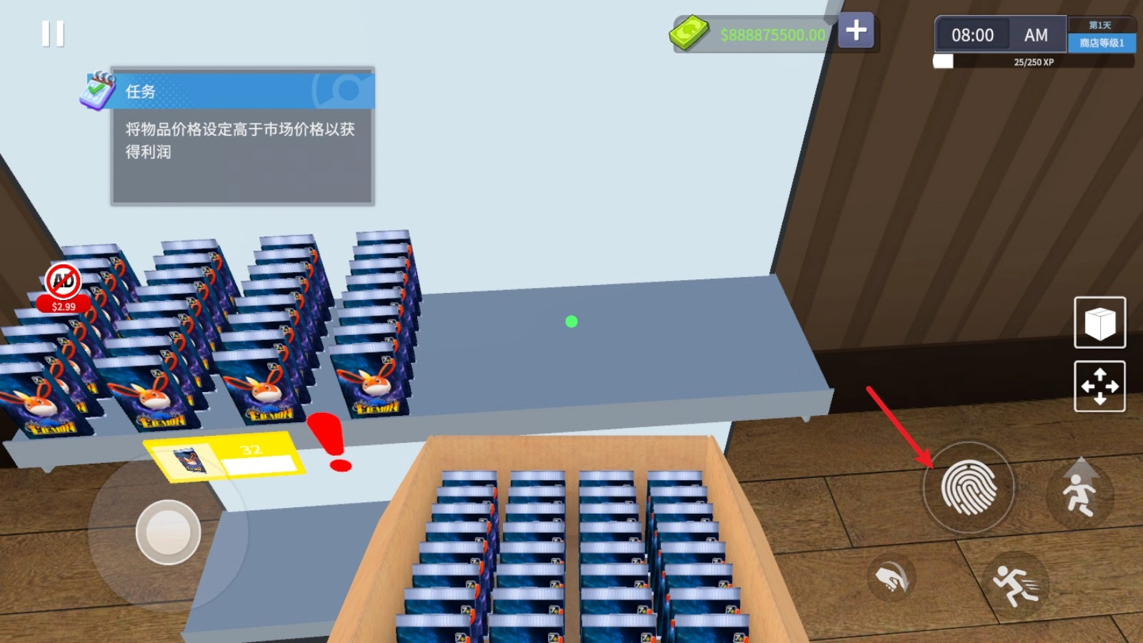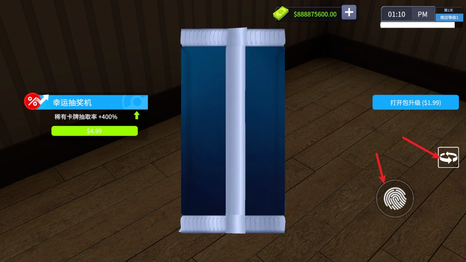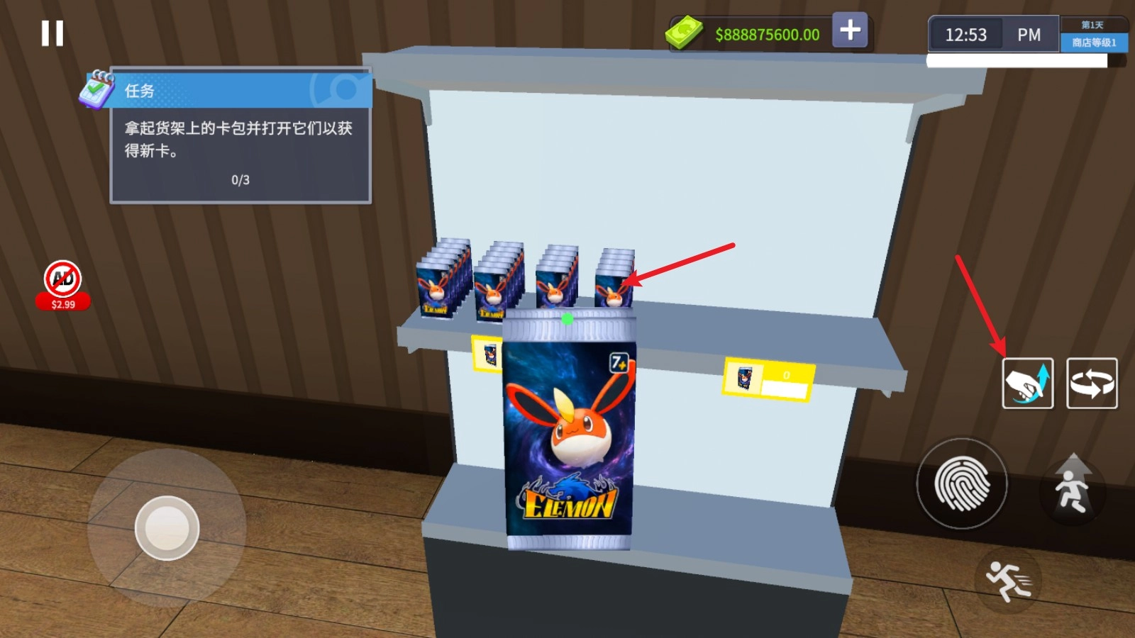 3、走近店内的货架,点击卡包即可将其放置到适当的位置,整理好货架,让它们看起来更有吸引力。