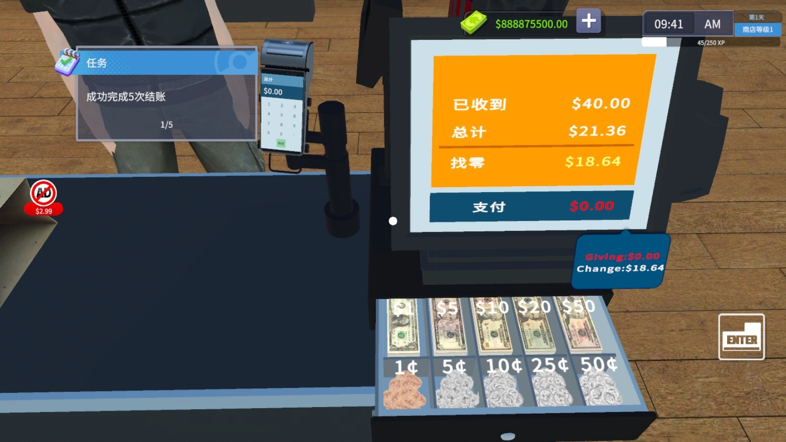 6、当你完成摆货和定价后,只需将店门口的标识改为“开门营业”,你的商店便正式对外开放,顾客会陆续进店购买卡牌。