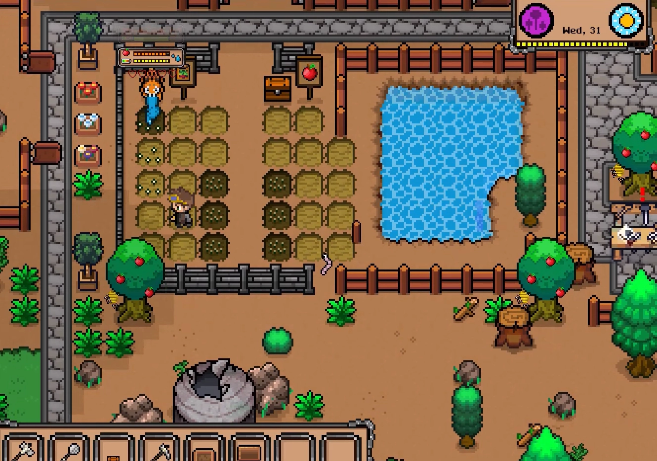3、在农场里种植作物、饲养动物、采集资源,自由打造属于自己的土地。