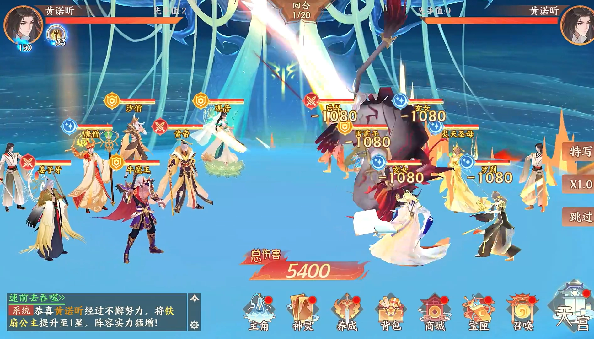 2、玩家能自由布阵参与神仙对决,靠角色搭配和技能连携完成高难度挑战。