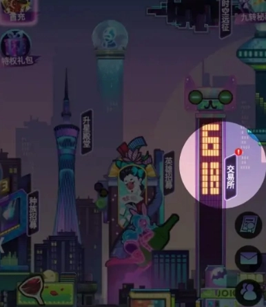 2、在游戏中选择【交易所】建筑,就能找到转盘夺宝。