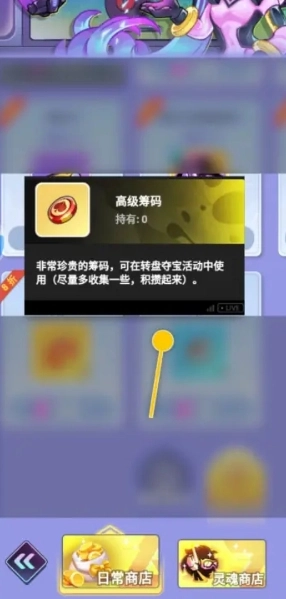 3、转盘夺宝需要使用高级筹码,玩家可在【日常商店】中获得。