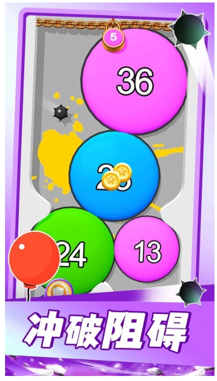 4、真实操作,比拼快感,每一幕的冲击力极强,更重要的是,气球上面的数值在碰撞之后会产生变化,玩家自由解锁更多有趣的挑战方式,想办法让气球飞起,完成任务。