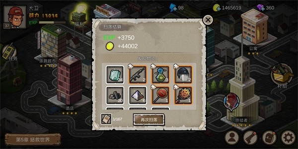 中期:当玩家可以稳定刷2-7关获取弹夹后,此时玩家日子逐渐好过了一些,在关卡中不停吃弹夹推进打赢3-3关,可以通过扫荡3-3关获得大量蓝色装备碎片,此时玩家的大蒜香水也快合成好了,5星蓝喷子+5星蓝冲锋+大蒜香水+蓝色弹夹,一口气从3-4推到5-4,相当舒服。