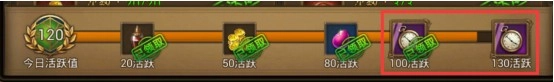 2)每日的活跃奖励,只要达到100和130,都可以获得1张5小时的挂机外挂时间 。