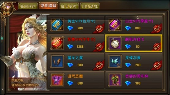 3)也可以直接去商城购买,50钻石即可获得1张5小时的挂机外挂时间了。