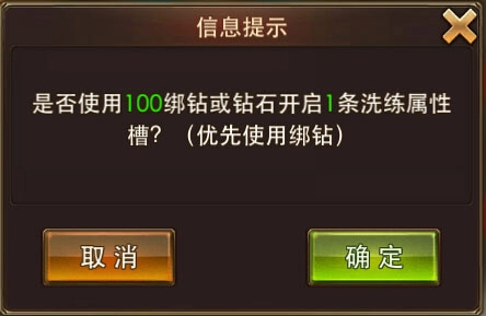 玩家可以使用100绑钻或钻石开启新的洗练属性槽,开启时将自动生成一条洗练属性,每件装备最多可以拥有4条属性槽。只要花费100钻即可拥有高额属性,小编认为性价比是很高的哦!