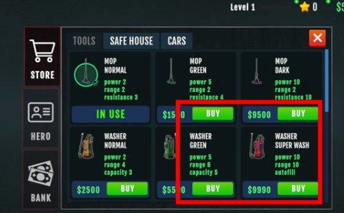 完成所有清理工作后领取金币奖励,解锁更强工具。